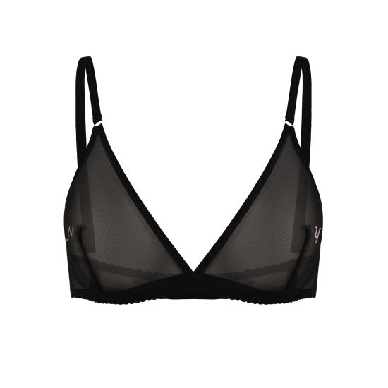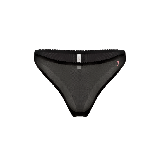 Novel Black weightless comfortable transparent mesh lingerie set with underwire bodice, classic thong panties and unique NYF embroidery. Black, basic but not trivial. For those who value details