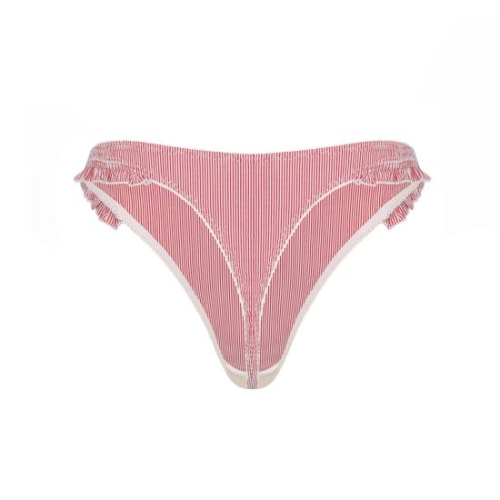 Underbust corset Sunset Fault from the Season Fault Collection is a structured corset-style top without cups, featuring a wavy upper line. Made from 100% cotton shirting fabric in a red-and-white stripe, it gently highlights the waist and holds its shape. A bright and stylish addition to any outfit.