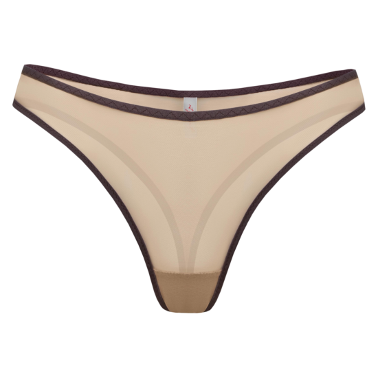 Delicate satin thong panties with adjustable straps Mia Red, with mesh at the back and high-quality details. Complete the look with the Mia Red bra.