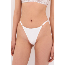 Delicate satin thong panties with adjustable straps Mia White, with mesh at the back and high-quality details. Complete the look with a Mia White bra.