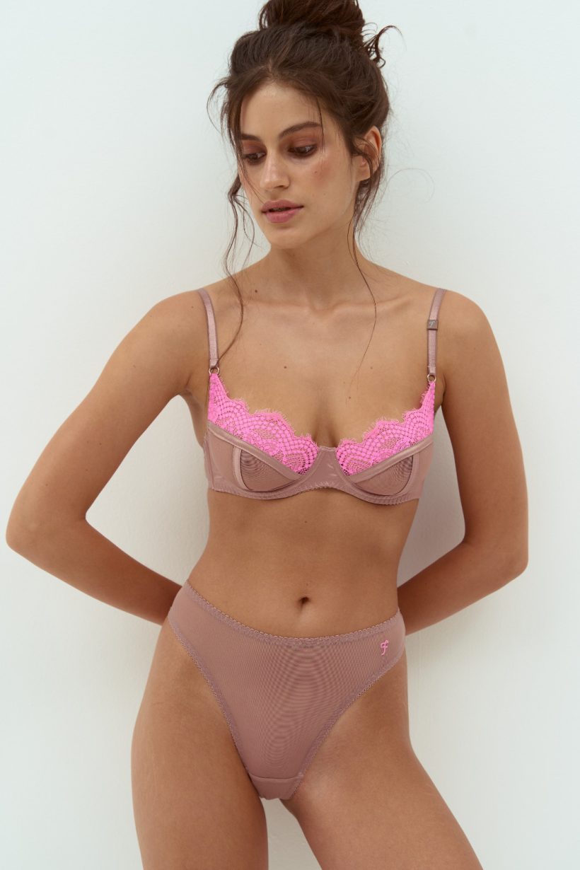 Склад: мереживо - 100% поліамід; сітка - 70% поліамід, 30% еластан; сатин - 92% поліамід, 8% еластан.