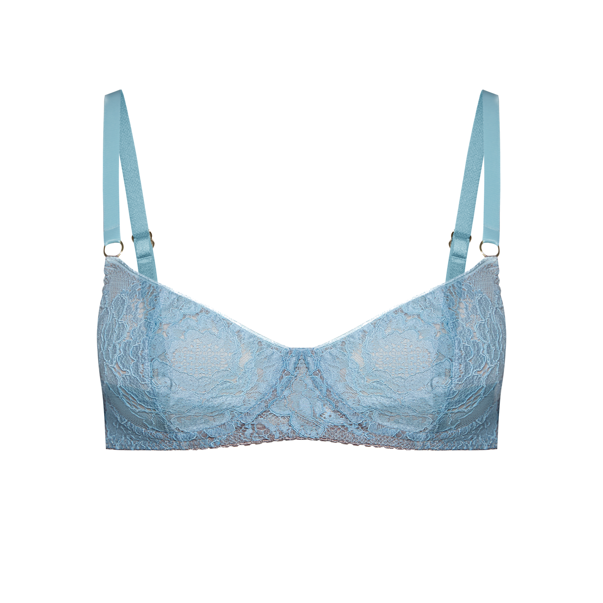 Mia Blue — ніжний і впевнений одночасно. Бюстгальтер виконаний з делікатного мережива у свіжому блакитному відтінку, що м’яко підкреслює форму грудей і створює відчуття легкості. Продуманий крій забезпечує комфортну підтримку без зайвої жорсткості — ідеальний варіант для щоденного носіння. Тонкі регульовані бретелі дозволяють точно підлаштувати посадку, а мінімалістична фурнітура додає акуратного преміального акценту. Mia Blue виглядає легко й природно на тілі, залишаючись майже невагомим. Бюстгальтер гармонійно поєднується з трусиками з лінійки Mia Blue, утворюючи цілісний, чистий та сучасний сет — для днів, коли хочеться комфорту з естетикою.