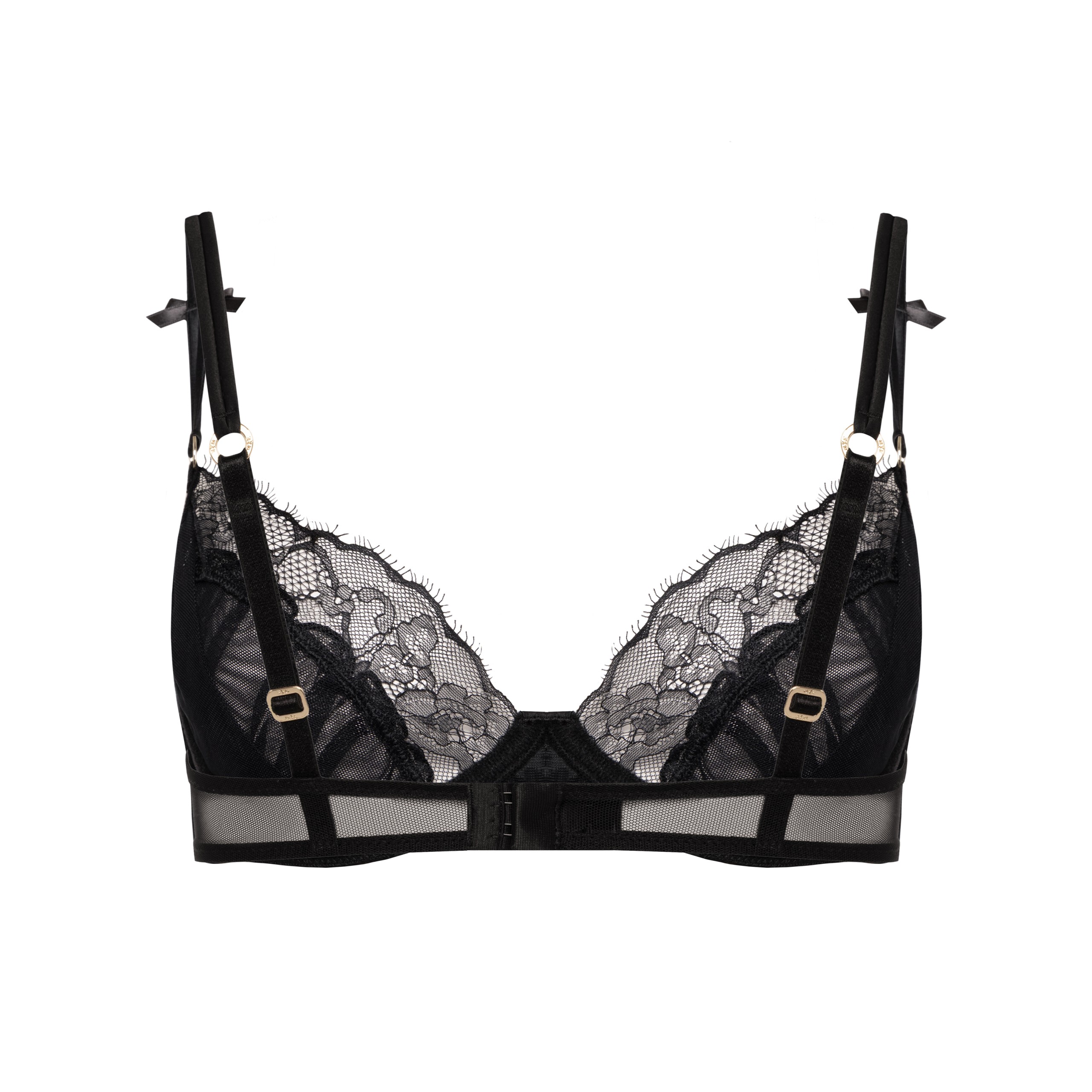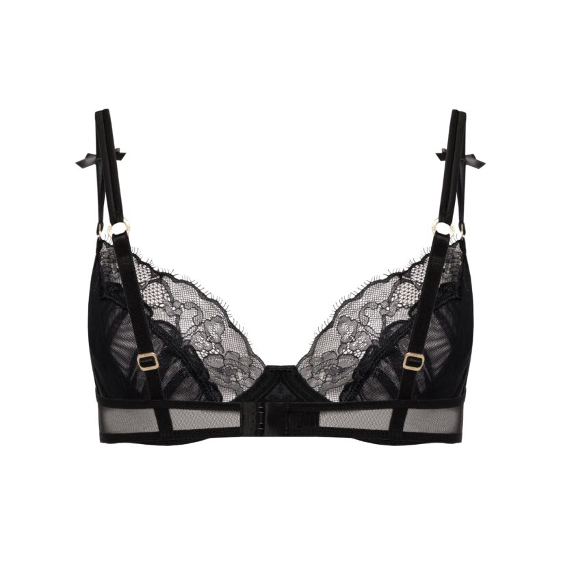 Бюстгальтер Midnight створений із поєднання мережива та прозорої сітки для ніжної підтримки й природної форми грудей. М’які чашки комфортно прилягають до тіла, а витончені деталі — бантики та регульовані бретелі — додають романтичного акценту. Образ завершує брендована фурнітура преміум якості, яка підкреслює стиль і гарантує комфорт у щоденному носінні. Легкий, повітряний і водночас виразний — ідеальний для щоденних моментів і особливих вечорів.