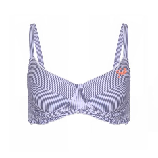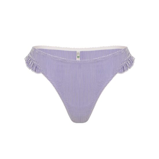 Комплект білизни Sky Fault виконаний із легкої сорочкової бавовни у синьо-білу смужку, що надає йому свіжості та літнього настрою. Завдяки продуманому крою він м’яко підтримує та підкреслює форму, залишаючись максимально комфортним для щоденного носіння. Тонкі бретелі регулюються, забезпечуючи ідеальну посадку, а делікатні рюші додають ніжного акценту. Контрастна вишивка Fault на чашці стає яскравою деталлю, яка підкреслює унікальний характер моделі. Бюстгальтер гармонійно поєднується з трусиками-стрінгами та шортами з набору Sky Fault, утворюючи цілісний і стильний сет.
