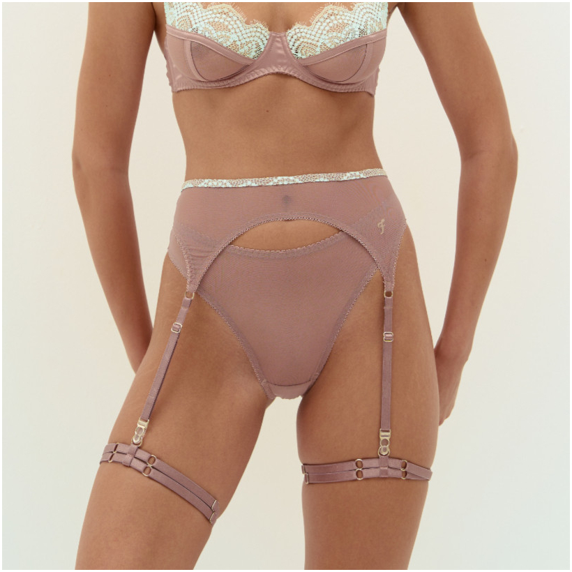 Зручні трусики стрінги Coachella Mint з вишивкою виготовлені із коричневої сіточки та високоякісних деталей. Доповнюй образ ліфом, поясом та гартерами Coachella Mint.