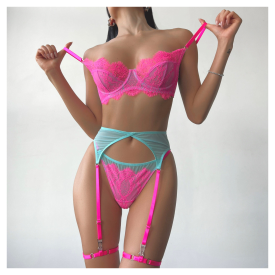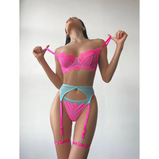Склад: мереживо - 100% поліамід; сітка - 70% поліамід, 30% еластан; ластка - 100% бавовна.