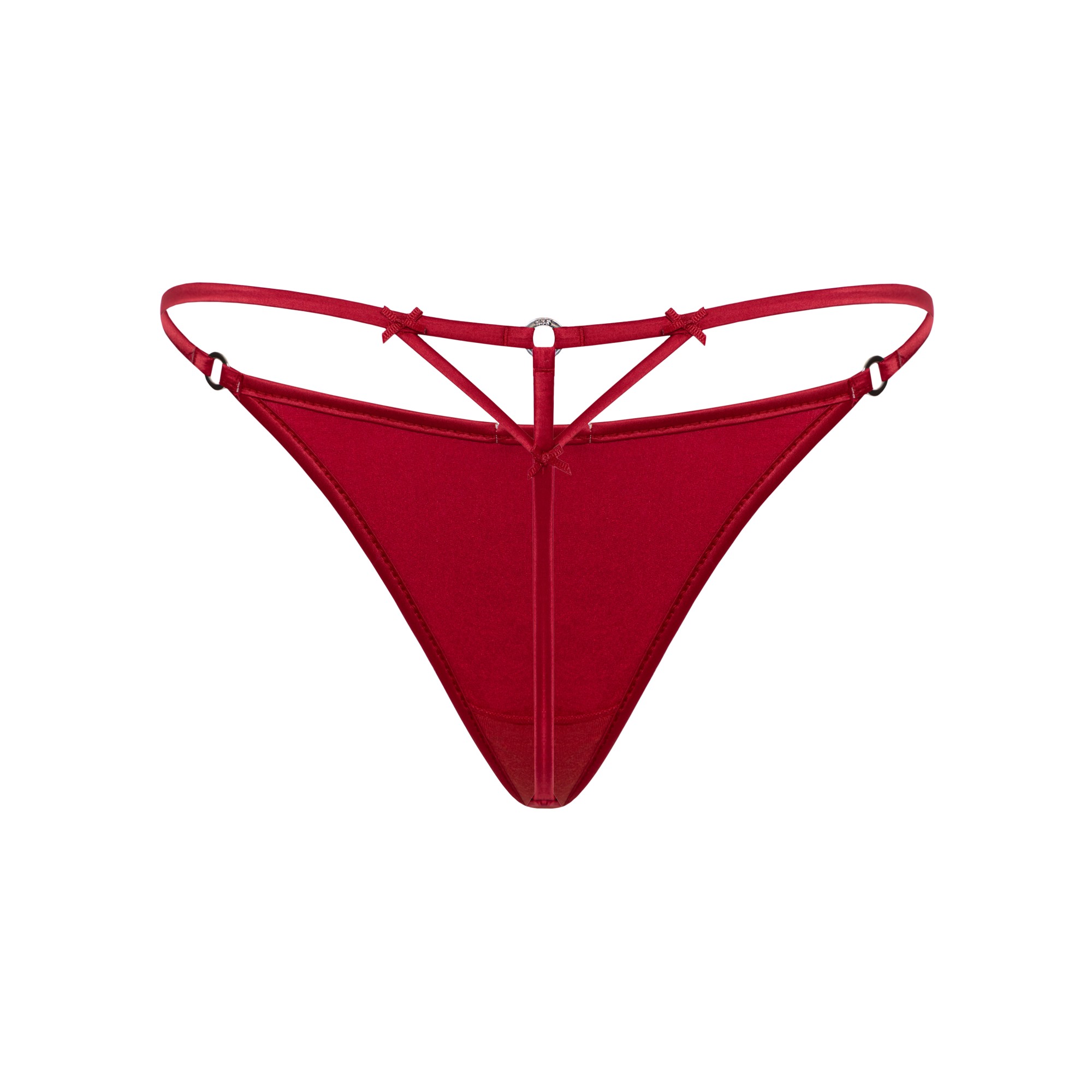 Holiday Thong— це святкова спокуса в найелегантнішому виконанні. Модель створена з м’якого оксамиту глибокого червоного відтінку, який ніжно відбиває світло й дарує ефект делікатного блиску. Еластичні бретелі з боків забезпечують акуратну посадку, а брендована фурнітура преміум-якості додає виробу довершеності. Особливу увагу привертає задня частина — витончена гра ліній та тонкі стрічки, прикрашені маленькими бантиками. Легкий акцент, що створює настрій «свята тільки для себе». Holiday Thong ідеально доповнює Holidays Panty Set, додаючи вашій колекції нотку сміливості та святкової естетики.
